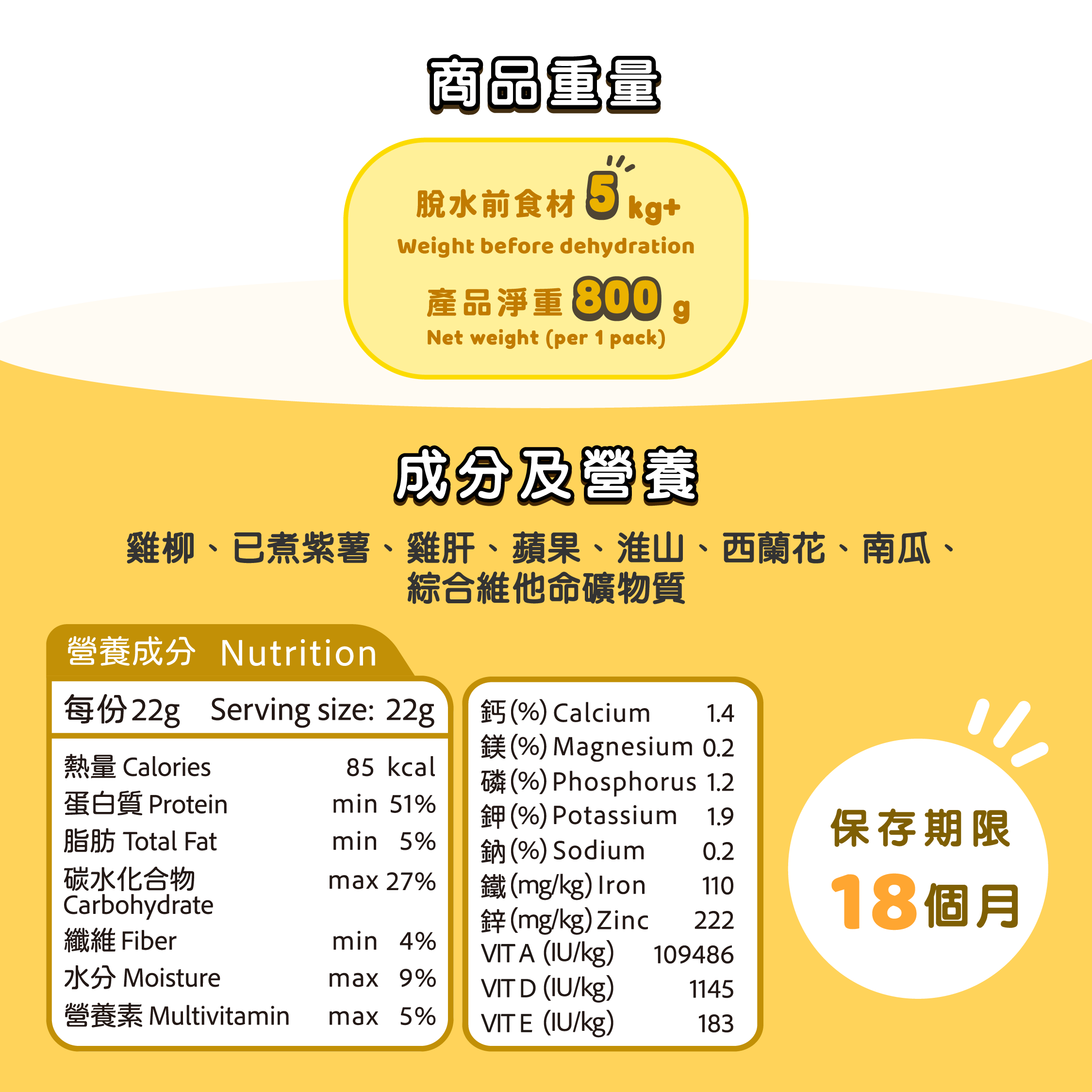 1包800G = 36餐22g凍乾餐